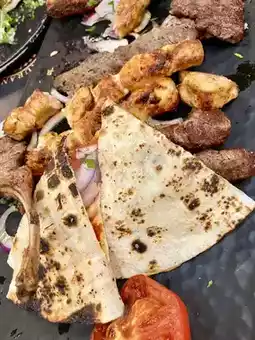 •Mixed Grill Plate: Tender lamb, chicken, and kebabs.