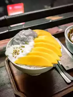 But the highlight of this shop is the fresh mango coconut milk bingsu and mashed taro. It is very delicious and not too sweet. Eating them together is great. It is well-rounded. But the portion is quite big. I recommend eating it for two people.