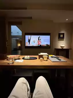 Thoughtful details that instantly win your heart 💖: The bathroom counter is stocked with makeup remover wipes and facial cleanser, which is super considerate for makeup lovers. The fruit platter comes with a peeler—perfect for detail-oriented guests! The mini bar offers complimentary first-round drinks, and there's warm dessert soup served in the evening—absolutely delightful! By the bathtub, you'll find scented candles 🕯️, creating a perfect ambiance and turning bath time into a ceremonial experience.