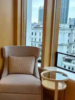 We stayed in the "Lingnan Suite," where the bathroom features a "hollowed-out lattice window bathtub" 🛁. As you soak, the light and shadows from the lattice window shift with the sunlight, creating a natural filter effect! The most impressive feature is the "infinity mirror table" on the balcony. Place your breakfast on it, and it looks like it's floating on the Pearl River 🍽.