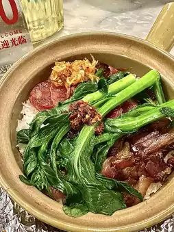 The most classic version is the fatty pork claypot rice. As the saying goes: “As autumn arrives, it’s time for fatty pork.” In the fall and winter, you can really taste the fragrance of the oil. The aroma of the fatty pork and sausage fully infuses into the rice. The rice grains are fine and slender, so they absorb the juices really well. 👍 If you don’t stir the rice right away when it’s served, you’ll get a beautiful golden crispy rice crust at the bottom of the pot — so fragrant and delicious! It’s simply a joy to eat on a sunny day — with every bite, the crispy rice crackles in your mouth 😋😋