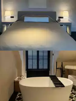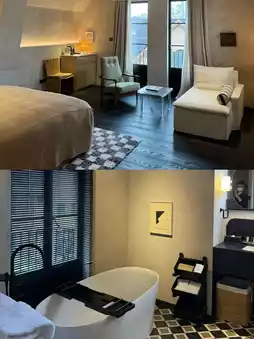 Amenities: The bathroom features a separate wet and dry area, with strong water pressure in the tub and just the right temperature. Bath salts and a soaking bag are provided. Both sides of the bed have charging ports, and the drawers contain steam eye masks and earplugs. Toiletries are from Aesop, the hairdryer is Dyson, and there’s even a bag of Lugaitu bath products, a signature brand from Aranya. A small wooden box in the room holds two books by Hermann Hesse. If you open them at dusk, the slanting sunlight blends with the warm glow of the rattan table lamp, creating the perfect staycation vibe.