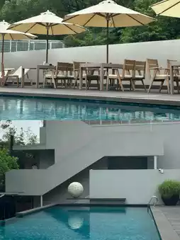 The hotel has only 46 rooms for now. I booked a one-bedroom suite and was pleasantly surprised by: the unexpectedly spacious layout, the impeccably tasteful soft furnishings, a minibar more generous than Rosewood's, comfortable bedding, Melbourne-based GA bath amenities, and a stunning view of the pool and woods. A minor drawback: other guests in the pool can see into the room, and the charm of the open-air bath is slightly diminished by the need to draw the curtains. But aside from that... I adore this place.