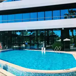 The hotel has indoor and outdoor swimming pools. The water is very clean. There are not many tourists. Lifeguards are in place.