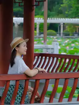 Wear a white dress and a straw hat 👒, stand on the wooden boardwalk, and glance back—the original photo will look like you've stepped into a Monet painting!