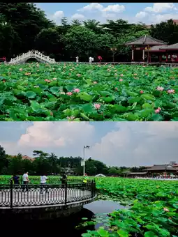 Featuring over 20 varieties of lotus and water lilies, the most stunning sight is the giant lotus flowers that reach up to 2 meters tall—an absolute visual spectacle! You'll also find tri-colored water lilies, ornamental lotus flowers, and edible lotus flowers. 🌺 Compared to crowded large parks, this location is more refined and tranquil, yet the scale and beauty of the lotus flowers are equally impressive. It's an ideal choice for a suburban getaway or a relaxing weekend in Guangzhou!