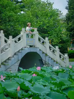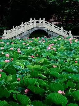 🔻 The area opposite the arched bridge is better for photos; the bald cypress trees nearby have lotus flowers closer to the shore, perfect for close-ups.