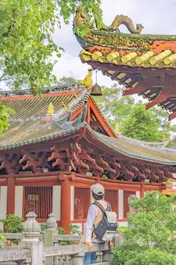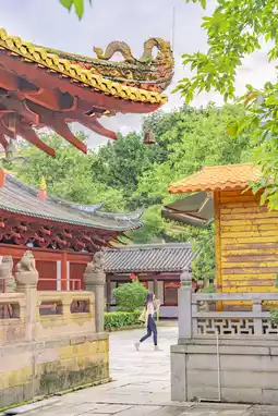 2. **Mahavira Hall**: The most magnificent hall in Lingnan, built during the Eastern Jin Dynasty. Capture its intricate eaves and brackets from the outside, or shoot inside with the "Three Saints of Huayan" as your solemn backdrop (no flash, please).