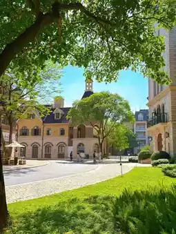 Hidden in Huadu District, Guangzhou, the stunning King Hotel at Nine Dragons Lake is a European-style wonderland. This dreamy town features 15 meticulously crafted European buildings, where red-brick arches, wrought-iron railings, and pointed clock towers blend seamlessly, exuding an unmistakable European charm. Every snapshot captures cinematic beauty, especially at dusk when the setting sun bathes the slate-blue rooftops, casting a warm and romantic glow over the entire town.