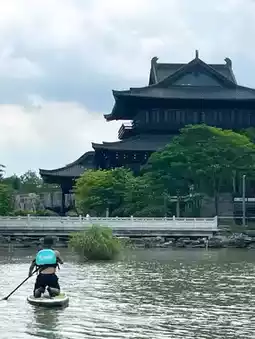 Paddleboarding at Haizhu Lake Park is a refreshing blend of cityscape and calm. Nestled in Guangzhou’s urban wetland, the lake offers smooth waters and skyline views of the Canton Tower and Cultural Centre. The Leshui SUP Club makes it beginner-friendly with inflatable boards, pro coaching, and full-day amenities like showers and lockers. Weekends bring vibrant energy as paddlers glide past treehouse cafés and birdwatching trails, while golden-hour sessions cast a dreamy glow. Whether you're chasing balance or just soaking in the scenery, it’s a graceful escape that turns every stroke into a moment of peace.