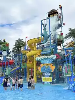 The wave pool area has an electronic music party after nightfall, and the park invites different singers and bands over from time to time