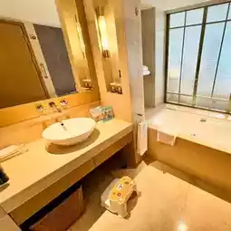 As soon as Lisboy entered the room, he saw the slide 🛝, tent, rocking horse and other play facilities 😍 I was so excited! And the big double bed, big bathroom & big bathtub🛁 It's great to take a bath after taking a shower at night, you can have so much fun without leaving the house😍