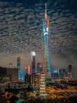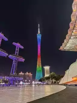 At night, Canton Tower becomes a colorful landmark, lighting up the Guangzhou skyline with changing rainbow lights. Visitors love seeing the tower glow in bright colors, which reflect beautifully on the Pearl River. Many people take boat rides or visit the tower’s sky deck for amazing night views of the city. It’s popular for photos and a must-see spot when visiting Guangzhou at night.
