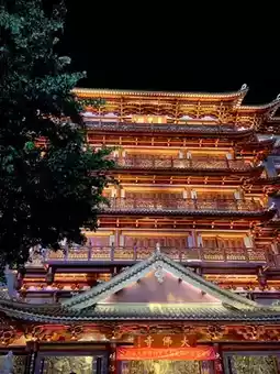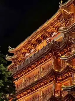 Located in the commercial heart of Guangzhou's central axis, the Pujue Tower, a large Buddhist temple, is known as the Guangzhou equivalent of Chongqing's Hongyadong Cave and the real-life version of Spirited Away. The temple, covering over 15,000 square meters, is one of Guangzhou's five largest Buddhist monasteries. Construction began during the Southern Han Dynasty (917-971), spanning over a thousand years. Construction began in 2010 on the temple's main Dharma-propagation building, the Pujue Tower, which was completed six years later. The roof is composed of specially crafted golden copper tiles, oxidized to withstand wind and rain. Even though the temple remains open year-round, it retains its grandeur and radiates golden splendor in the sunlight.