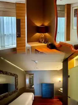 - Rooms feature a beige color scheme, meeting standard expectations. The king bed is formed by joining two mattresses.