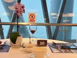 We had a fantastic dinner at the Twist Mediterranean Buffet Revolving Restaurant on the 106th floor of Canton Tower, Guangzhou! Although the price was expensive – a total of CNY 1352 for 2 people, inclusive of admission and alcohol 🥂 – but it was a *unique experience* having dinner at the "world's tallest revolving restaurant in a building" (Guinness World Records, 2014).