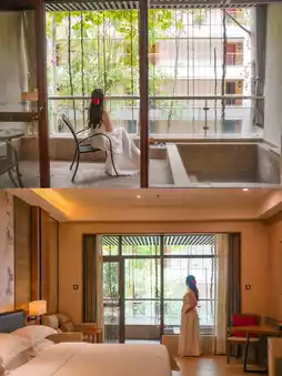 Entering the hot spring, the Chinese-style courtyard architecture comes into view—