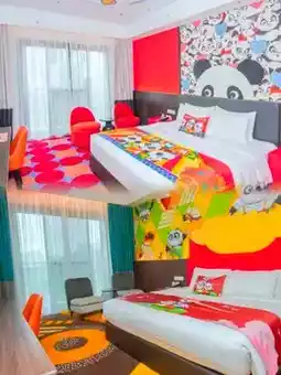 2. The guest rooms are packed with cartoon elements and well-decorated. However, soundproofing between floors isn’t great—I had noisy kids upstairs keeping me awake at night. We booked a Prince Room with a small bed, perfect for our child. The bathroom had a stepping stool for kids and a child-sized toilet seat—nice touches.