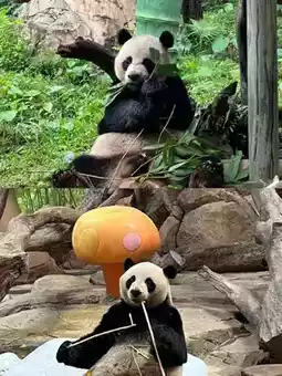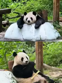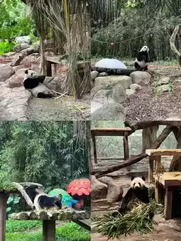 🐼Panda Village is the star attraction! 16 chubby pandas are having their "ice-cool team building" – rolling around on ¥200,000 refrigerated ice beds, happily munching on ice blocks, and enjoying special fruit iced tea prepared by their caretakers (even more exquisite than my summer bubble tea!). Arrive before 10am for the best experience: catch them splashing in the waterfall area – their adorable antics will fill up your phone's memory in no time📸. Don't miss 9-month-old "Mei Zhu" at the new Cantonese-style pavilion, swinging her little feet while munching bamboo – cuteness overload!