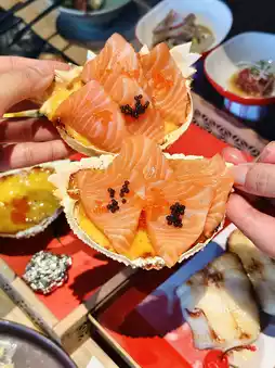 Silky sea urchin + thick-cut tuna + succulent salmon,