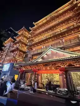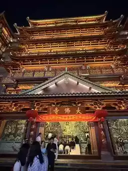 Amidst the bustling city, there stands a thousand-year-old Dafo Temple. At night, the entire building lights up, creating a spectacular view that attracts many visitors every evening.