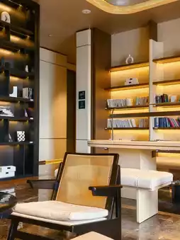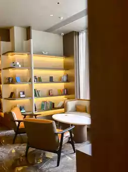 🌟 Step into the hotel and you can feel the simple yet sophisticated style ✨ full of charm. There is also a large bookshelf in the lobby, filled with artistic vibes, perfect for taking photos that look amazing—any shot is great for showing off on social media 😎.