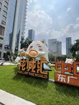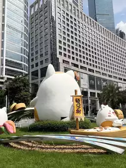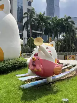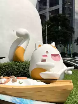 In the middle of Guangzhou’s bustling Huachenghui Central Plaza, you’ll find an unexpected and adorable landmark — a group of giant cat sculptures lounging right in the urban square.