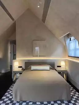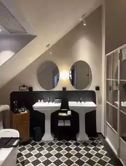 Each room is designed according to the original structure! Sloped roofs, small windows, loft layouts… some have soft daybed windows with views, others feature vintage floral tile bathrooms, like living inside an old European film 🎬 (Highly recommend Room 403! The colorful “Manzhou window” light and shadow are stunning)