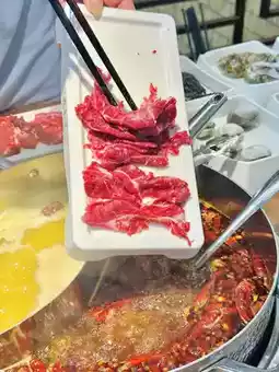 Dip it in the spicy hot pot, add some satay sauce, and enjoy the tender, flavorful bite 😭. Unlimited beef—eating until you can barely move is no longer just a dream! Even my friend, who usually gets full after just a few bites, managed to eat her money's worth here 🤣.