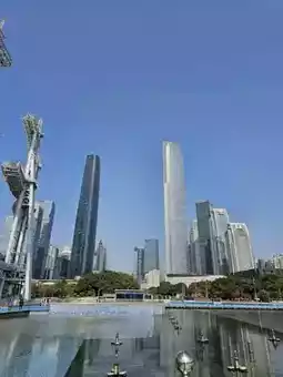 Park in the business district with views of impressive skyscrapers and the river. From here opens a stunning view of the famous Canton Tower.