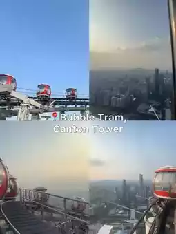 - We went to Canton Tower via the APM metro line: TianHe Nan -> Canton Tower. We booked the Bubble Tram through trip.com for the 4:00-6:00 PM departure. It was already crowded, but it was still acceptable because the later it got, the more people the building lit up. The queue was only long when we exchanged the QR code we bought online for a paper ticket. After that, there weren't many people. The building was cool and air-conditioned, which was amazing.