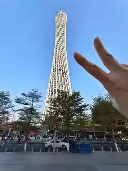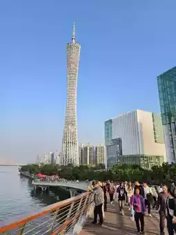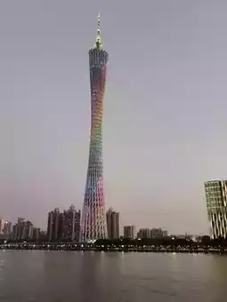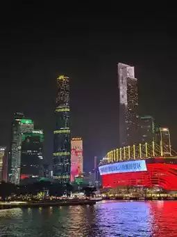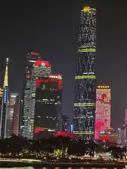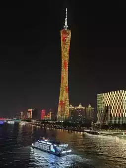 Canton Tower, also known as the "Little Slender Waist," is a landmark of Guangzhou, towering over the Pearl River. Its white pillars shimmer brilliantly in the sunlight, and at night, illuminated by lights, they cast a dazzling glow on the water.