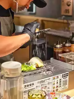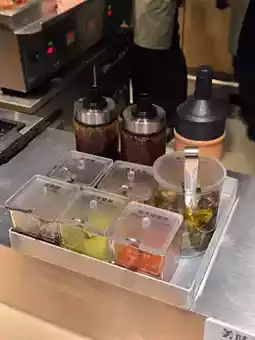 The restaurant is mainly divided into two dining areas, are in front of the board around the middle of the iron plate and preparation area 🔥 While studying the menu has been served can add any Northeast Japanese rice and mussels tomato soup 🥘 In addition, you can prepare a unique nine-color sauce 🥢 from onion sauce, specialty Aurora sauce to the most delicious garlic chili sauce are placed waiting for the burger steak arrived