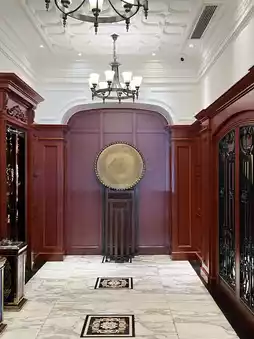 Soaring ceilings, gleaming marble floors, and exquisite chandeliers create a breathtaking first impression, while traditional Chinese art and modern luxury seamlessly blend in this iconic riverside property.