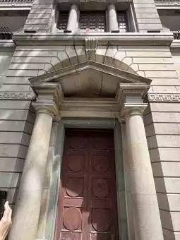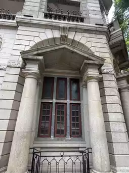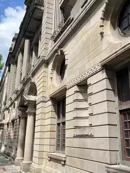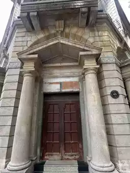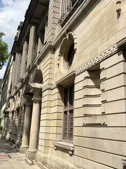 This colonial-era landmark boasts majestic Roman columns, intricate stone carvings, and a symmetrical classical facade that exudes grandeur and history.