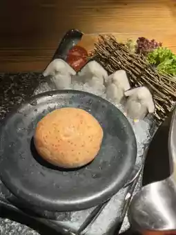 This dish features penguin-shaped squid paste and large shrimp paste. The squid paste is adorably shaped like penguins and has a bouncy texture, while the shrimp paste is loaded with crab roe, offering a rich and fresh taste.