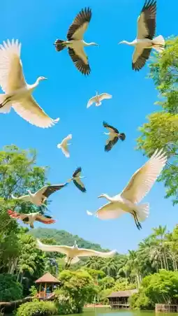 Day 3: Sleep in, then visit **Chimelong Birds Park** (optional, or a relaxed visit before heading back) to see rare birds flying together and interactively feed cute birds. You can also stay at the hotel to enjoy the children’s water park. Check out at 12:00, then stop by **Panyu Aoyuan Plaza** to buy souvenirs: Chimelong plush toys, Guangdong herbal tea candies, and Chencun rice noodles.