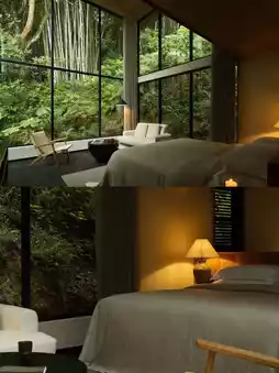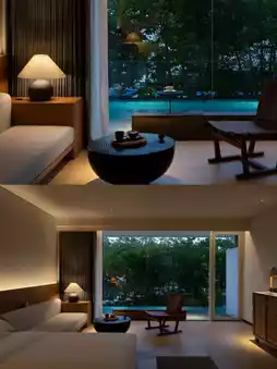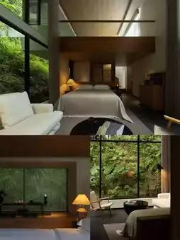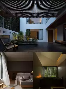 • Every room has floor-to-ceiling windows. The "Bamboo Shadow" room faces the valley directly. On rainy days, watch raindrops hit bamboo leaves; on sunny days, see sunlight filtering through bamboo gaps. It never gets boring to look at;
