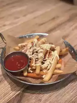 The most distinctive item is the two-toned fries for ¥39, featuring sweet potato fries and crispy potatoes, freshly fried and incredibly flavorful. The rest of the food is generally average.