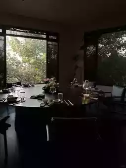 Who would have thought there was such a place in Guangzhou! Stepping into this restaurant's courtyard, it's like stepping back in time, falling directly into an ancient painting—small bridges and flowing water circling pavilions, a charming mountain courtyard surrounded by lush bamboo. The beauty before you is so captivating that even your breath will slow down.