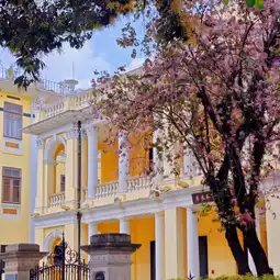 ✨ Lourdes Church: A white Gothic-style church with stunning stained glass windows that beautifully reflect sunlight.