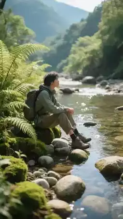 💦 Spring highlight: Crystal-clear stream with fish darting by, waterfall roaring like white noise
