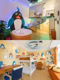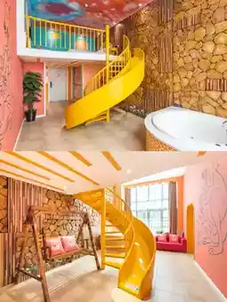 Highly recommend the slide loft room! It’s totally worth the upgrade: a two-story LOFT design with a slide from the second floor to the first floor, kids can slide all day long without stopping; the second floor has a large bed plus a children’s bed, TVs on both floors, so adults and kids can enjoy themselves separately;