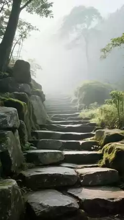 4๏ธโฃ Ink wash style stone steps in the early morning
