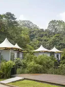 Surrounded by mountains and forests, birds chirping and cicadas singing, Zhenyi tents🏕️, wooden houses, flower seas, and swimming pools