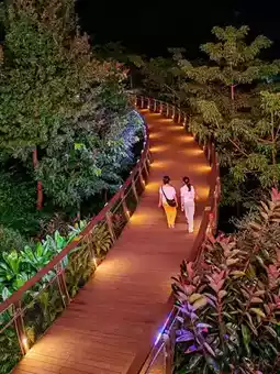 I can stroll leisurely along the trail without worrying about blocking anyone’s way, and I can carefully adjust my camera at the perfect spot without worrying about disturbing others; I can stop and lean on the railing of the viewing platform to admire the nearby lights and the distant Canton Tower, or I can jog along the suspended cloud path chasing the direction of the wind without caring about others’ gazes.