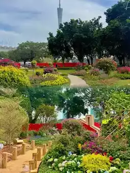 The grand finale! The roadside is already planted with new flowers. Standing in the sea of flowers, Canton Tower and Liede Bridge frame the scene. At dusk, the sunset shines on the flowers, and even the shadows feel gentle. This is the "killer angle" for social media photos.