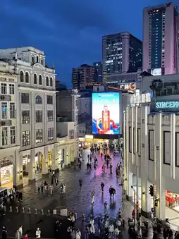 A shopping destination for shoppers and tourists, we recommend Beijing Road, a bustling pedestrian street bustling with people and shops. It's one of the most famous tourist attractions in Guangzhou, China, boasting a variety of restaurants, street food, and shopping options.