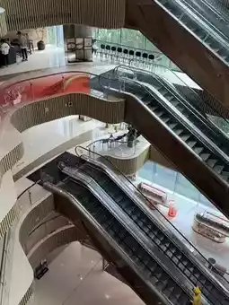 As you step on, it ascends through the mall’s open atrium, drawing your eyes up through layers of sleek curves and glass. The metal ribs of the ceiling frame your view, creating a stunning, almost spaceship-like tunnel. This isn’t just a way to get upstairs; it’s a photogenic experience that blends design with drama.
