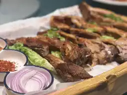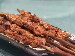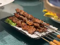 Signature lamb kebabs sizzling with cumin and chili flakes